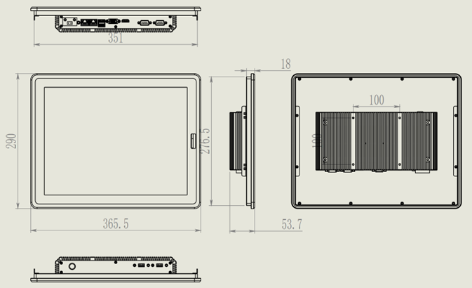 365.5 mm *290 mm *53.7mm(长×宽×厚)